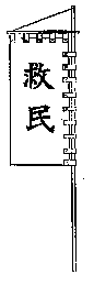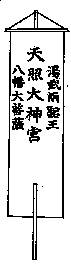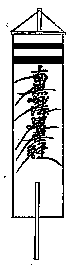 即チ先手前列ニ江州浪人岡村周輔同今助アリ、第三列ニ城同心太田梅之輔、備前浪人並河十郎兵衛、讃 岐浪人三好治右衛門アリ、後陣瀬田済之助ノ後ニ今川弓太郎代理松本麟太夫アリ、麟太夫ノ左右ニ高槻浪人山本林左衛門及ビ阿山良輔アリ、而モ是等人名諸書同ジカラザレバ或ハ誤伝ナシトセズ、 尚其他此ノ種ノ行列中瀬田藤四郎宮脇志摩、竹上万太郎、深尾才次郎、横山文哉等ノ名ヲ列シタルアリ、而モ 瀬田藤四郎 済之介父 ハ病気ノ為ニ早ク難ヲ河内ニ避ケ、宮脇横山等ハ戦機ノ錯誤ノ為ニ軍ニ会セズ、竹上万太郎ハ事ニ及デ怯懦逃走シ、深尾氏ハ百姓百余名ヲ率テ京橋口ニ来テ路通ゼズ事ニ及バザルノ類区々トシテ皆多少ノ出入アリ 又軍ノ表章タル旗幟ニ就テハ極テ注意スベキモノアリ、回天記ノ記スル所ヲ挙グレバ左ノ如シ。