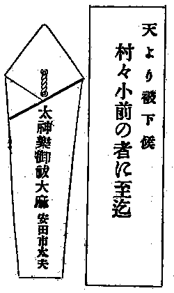 人家最も多き大村の神殿へ張附け置候ふ間、大阪より廻し有之候ふ