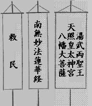 其他、五三の桐の紋を打つた旗などでした。この桐の紋は彼れが今川 義元の後裔だからなです。中には、天照皇太神を中心として其左右に 春日大明神と八幡大菩薩とを配したものもあつたさうです。故に、 ・・・・・・ ・・・・・・・ ・・・・・ 紋所五三桐に三ツ引。天照皇太神宮、左右八幡大菩薩、春日大明神。 ・・・・・・・・・・・・ 南無妙法蓮華経為諸人助之。右三品之旗を押立て――。(大阪騒動 聞書) ・・・・・・・ ・・・・・・・・・・ 建国寺にて勢を揃へ、題目を認め候旗。天照皇太神と認め候旗。其 外下に為諸人助之と認め候幟数本押出て――。(大阪一乱書取) 等の記事も見えます。 が別けても這般の義挙に七字の玄題を高標せしことに於て、彼れの か 義挙其者の徹底してゐた事が分りませう。恁くて彼れの義挙を尤も有 かつ 意義に点睛し得たのであります。かるが故に吾人に共鳴せる某師も曾 か て之に批判を加へて、彼の一世の豪傑なる大塩平八郎にして、彼の当 代の陽明学者たる大塩中斎にして、而も救民のため献身的義挙を企て、 自ら進んで死地を踏むに当り、法華七字の題目を以て軍旗とするに至 りては無意味でなく偶然ではなからうと信ずる。必然平素の信仰を托 する所なくして然るではなからうかと思ふ。一たび此点に着眼して仔 細に彼れを解剖し来る時は、彼れ大塩の処世経歴または其家風其学問 其主義の上よりも、既に久しく日蓮主義と相交渉をなして居るのみな そ らず、確乎として日蓮主義の信仰者であると思ふのである。即ち夫の 七字題目の軍旗こそは。彼れが明かに其信仰を標榜したるものではあ か かうけい あた るまい歟――。とまで切言しで居ますが、真個肯綮に中れる懸案であ らうと思はれます。凡そ彼れが祖先伝来の慣習的信仰、父祖の遺伝的 こと\゛/ 信念、その環境の家庭的信心、それは咸く法華経の色読より来り、日 蓮主義の体達より来てゐた事を証拠立てられます。「余人の法華経を こゝろ 読み候は口ばかり言葉ばかりは読めども意に読まず、意は読めども身 に読まず」。嗚呼大塩平八郎! 彼れも亦一代の偉丈夫たり大経綸家 たり大思想家たりしと共に、また一種熱烈なる当代の救世主だあつた るつぼ のです。彼れは陽明の無我観てふ坩堝に法華経の平等観を魂づけられ ちかうがふ たものです。即ち陽明の知行合一説から出立して、つひに実大乗の事 観へ到達しやうとしたものでありませう。
