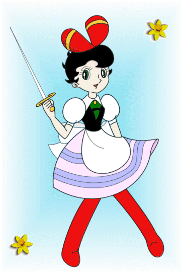 作中ではめったに拝めない女の子服のサファイアに挑戦したくて描き上げました。お洋服はは第1話でサファイアが着てるものですが、実際はこのうえに赤いフード付のマントをはおっています。でも襟もとのデザイン好きなので、マントで隠れてしまわないよう省略してしまいました。乙女チック(死語?)に花かごでも持たせようと思いましたが、結局剣を握らせてしまいました(^∇^)。
