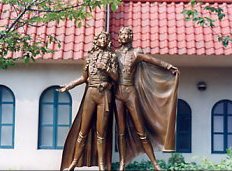 愛〜それは〜♪宝塚大劇場へと続く「花の道」にベルばら像が!思わず写真にとってしまいました。