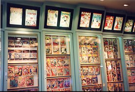 壁一面に展示されてるとても貴重そうな単行本の数々(左上)。幻の少女フレンド版も…(右上)ほ、欲しい!