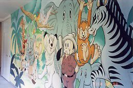 1階奥の通路に描かれたジャングル大帝の壁絵。中レオがカッコよいのです♪