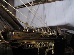 カティサークは、現在イギリスのグリニッジにあるテムズ川埠頭に永久保存されています。 この帆船はそのころ(19世紀中期)に開催されていた帆船レースで優勝するために作られました。 毎年中国で収穫される紅茶をロンドンまで届けるスピードを競うため中国上海とロンドンを往復、その性能と快速ぶりをみせつけました。1869年11月26日進水・1870年1月上海へ初航海。 |
